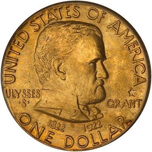 Another satiny gem, this time with the Star above Grant's name, with bright yellow-gold color that covers the frosty surfaces. Nicely struck for the date, indeed, about as fine as this Grant commemorative is ever found. The designer would have loved this one!