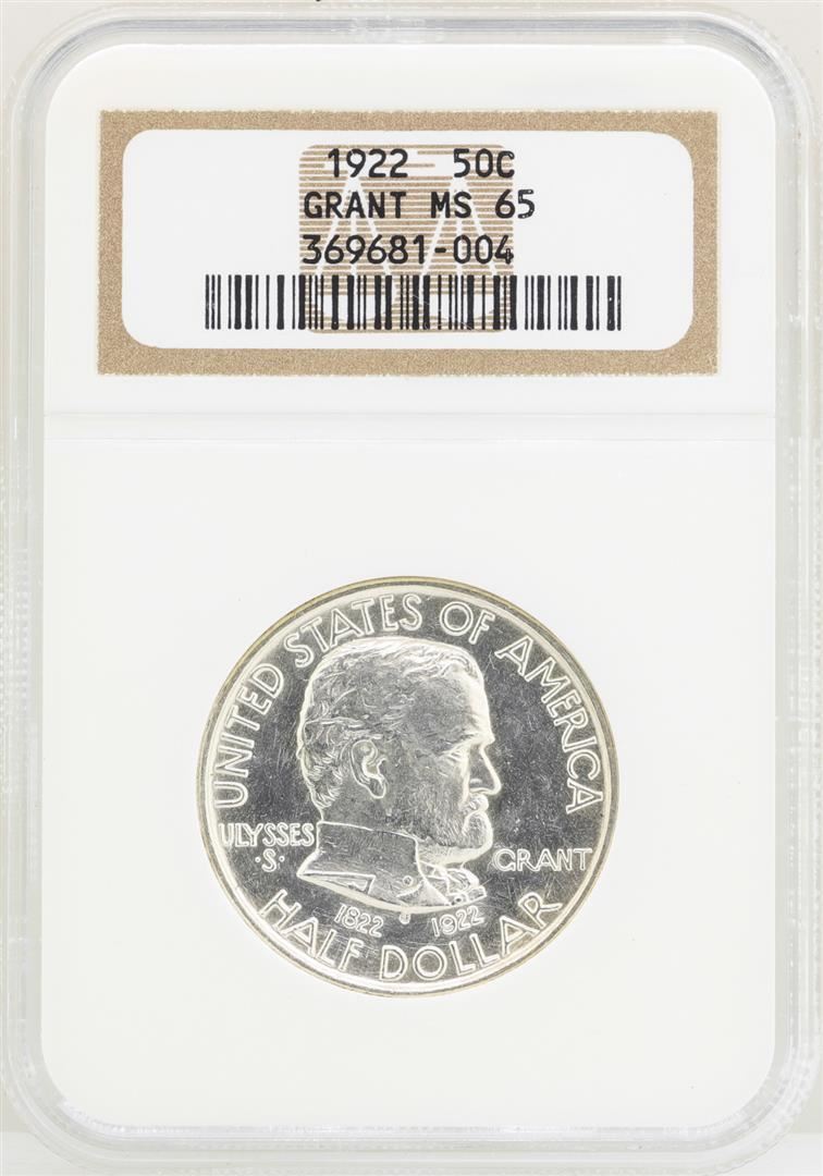 One 1922 Grant Memorial Commemorative Half Dollar Coin NGC MS65. NGC Certified.
