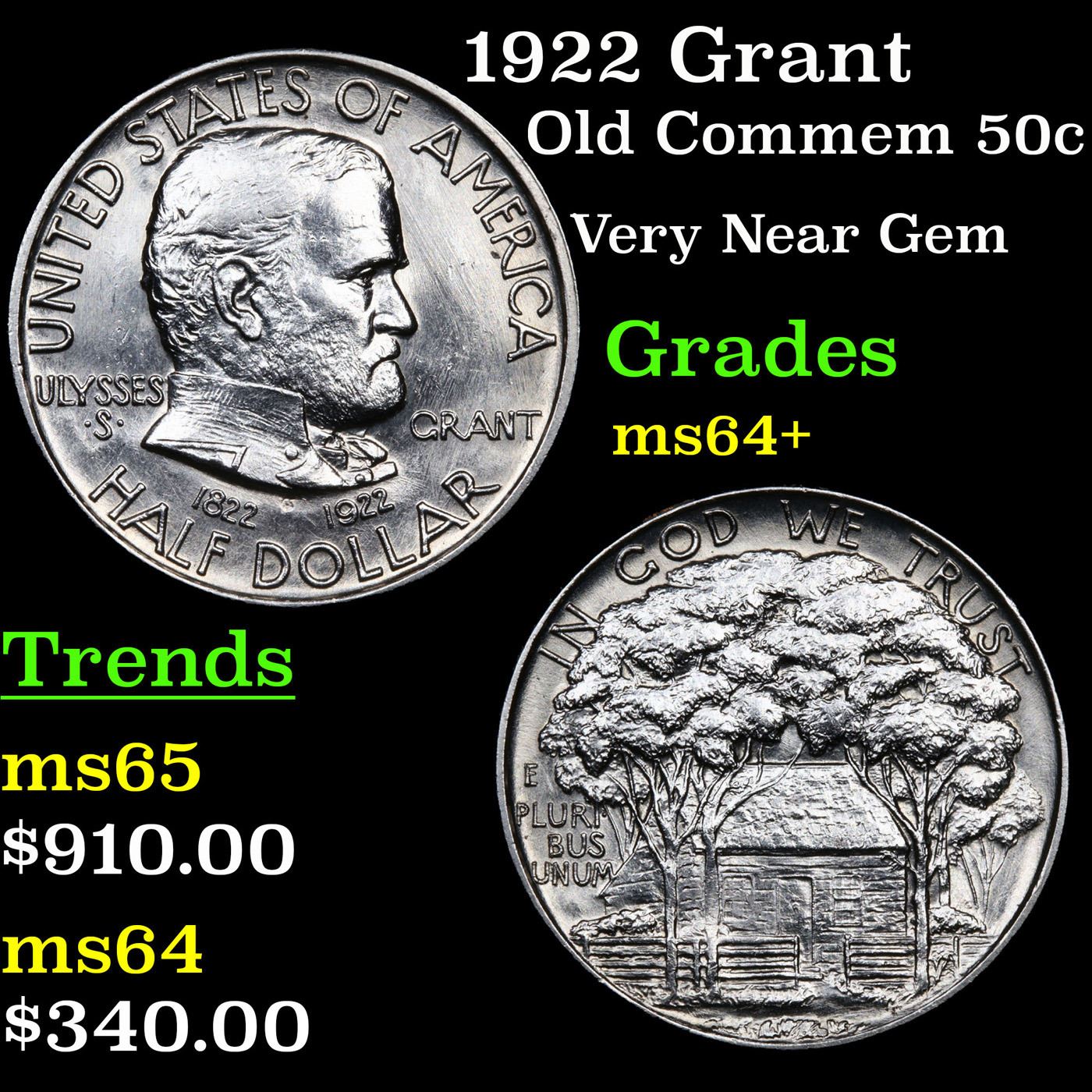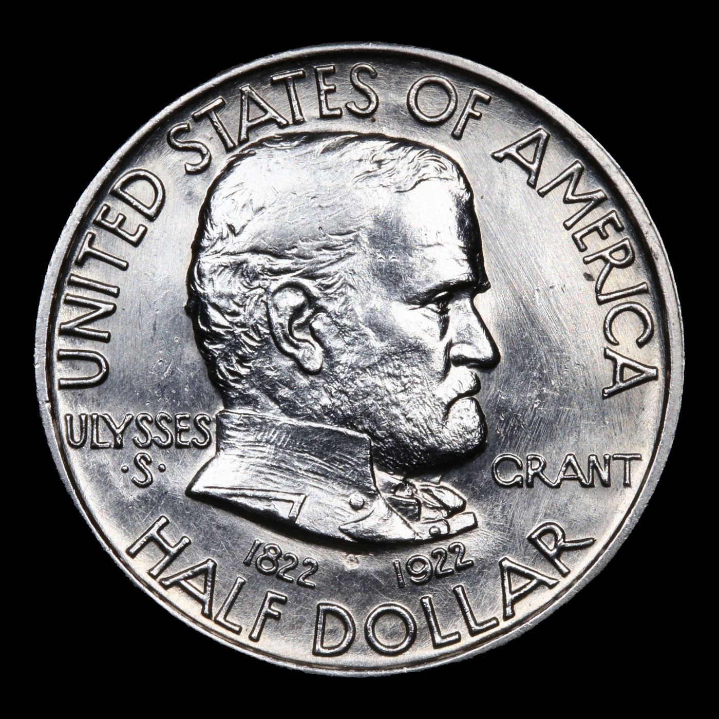 1922 Grant Old Commem Half Dollar 50c Grades Choice+ Unc. This is one of the Most Liked Commemoratives in the Entire Series! The Grant Halves are Notoriously Difficult to Grade, partly because Raised Die Lines on the Obverse Look at First Glance like Hairlines or Scratches. Points to check for wear include Grant’s Cheek and the Hair Above His Ear. The Reverse’s Dense Design Tends to mask imperfections and wear, but light friction often can be Detected in the Treetops. A Scarce and Sought After Commemorative!
