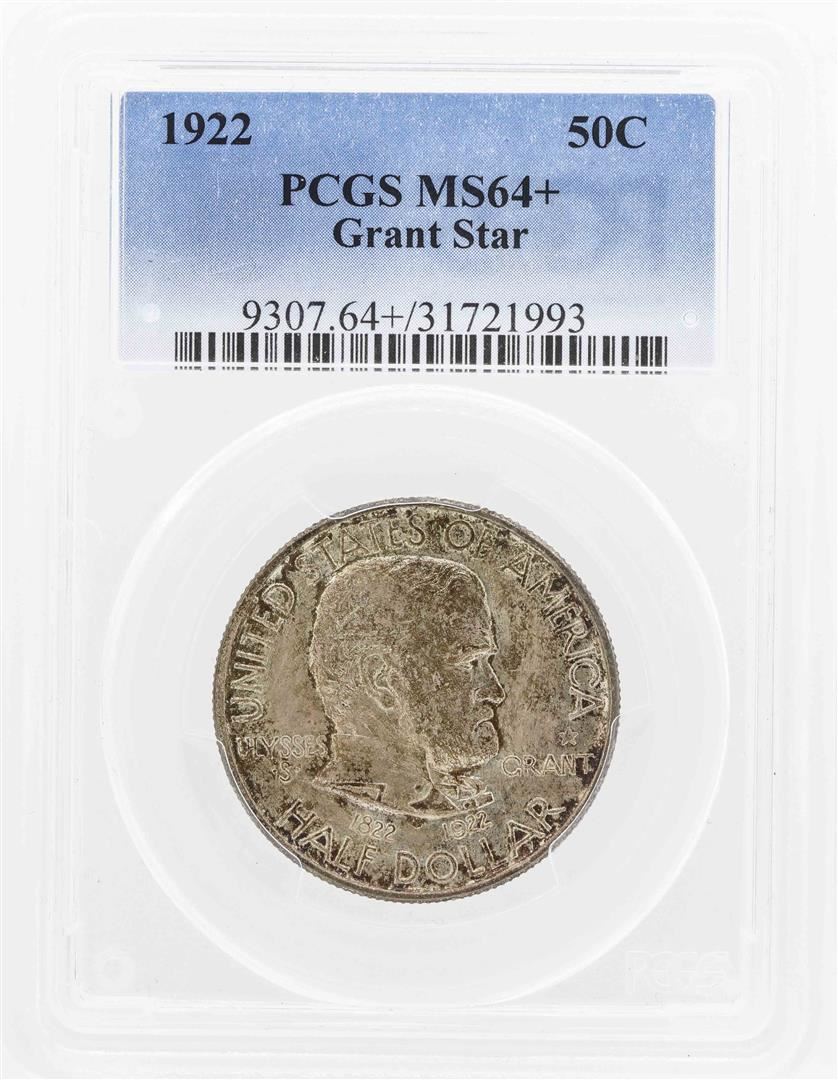 One 1922 Grant Star Memorial Commemorative Half Dollar Coin PCGS MS64+. PCGS Certified.