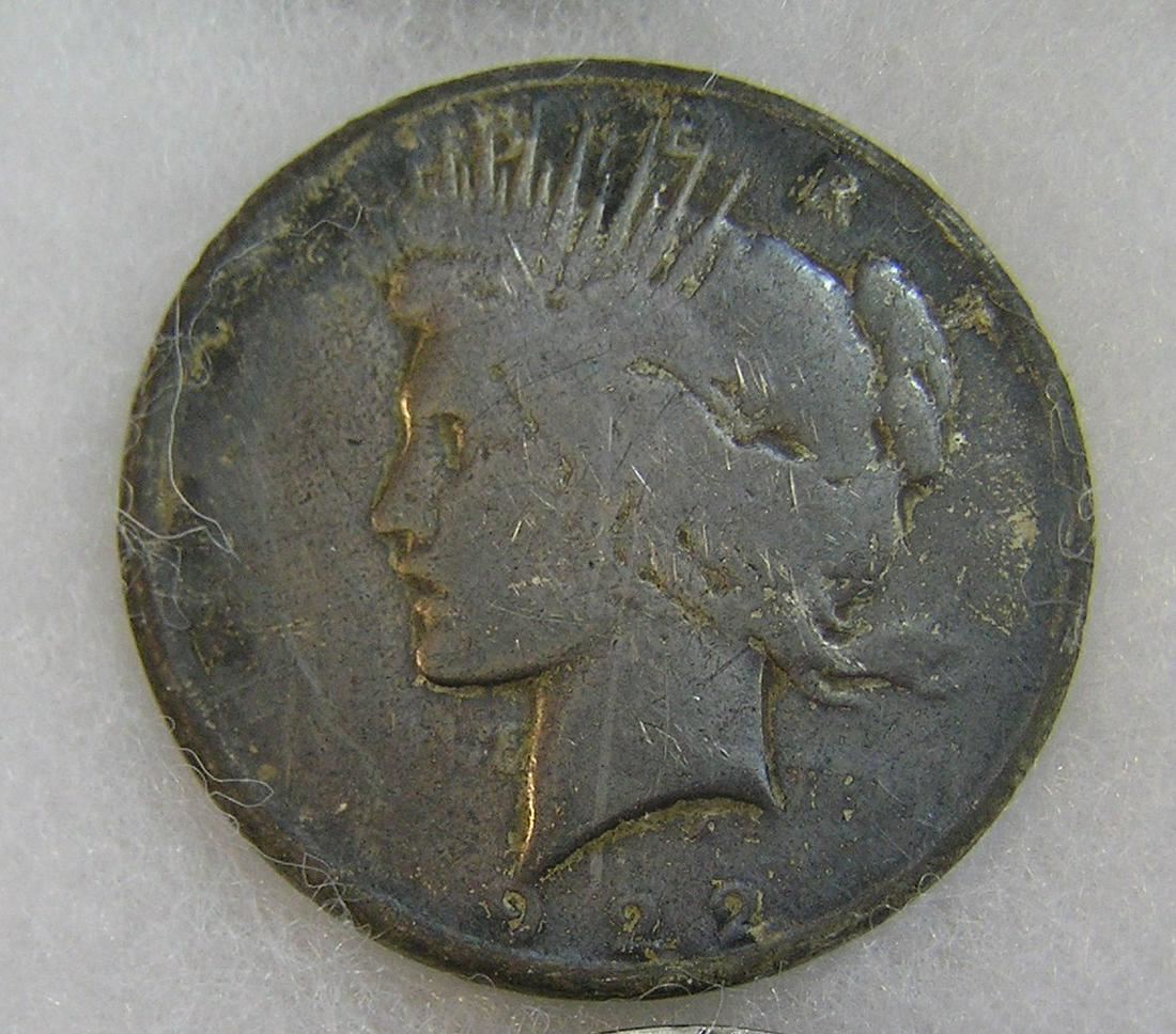 1922 Lady Liberty Peace silver dollar in poor condition est. value $35.00-$40.00