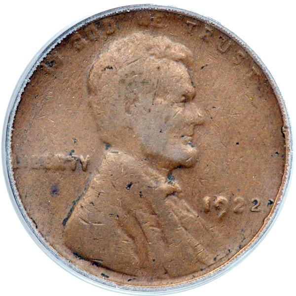 1922. No D. Strong Reverse PCGS graded Genuine. Some marks on both sides. Our grade is sharpness of Fine (PCGS # 3287) .