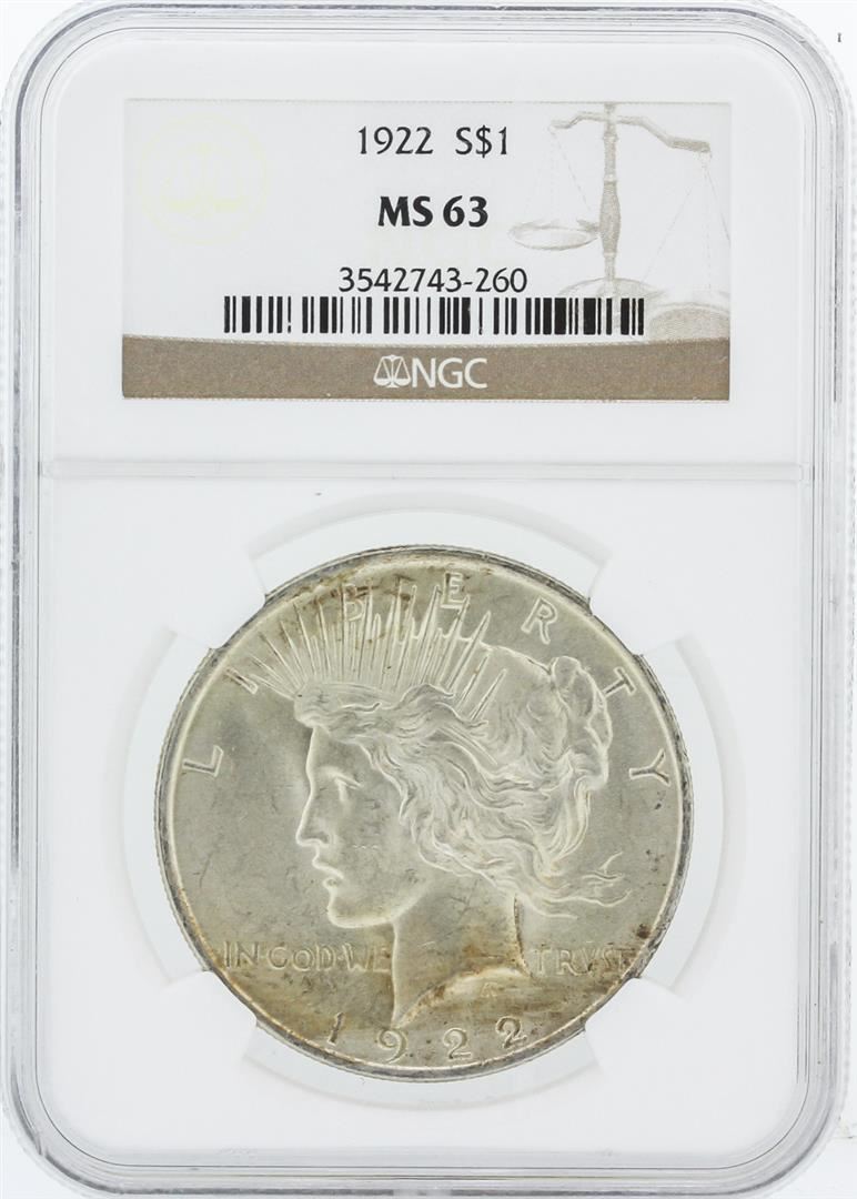 One 1922 NGC MS63 Morgan Silver Dollar. NGC Certified.