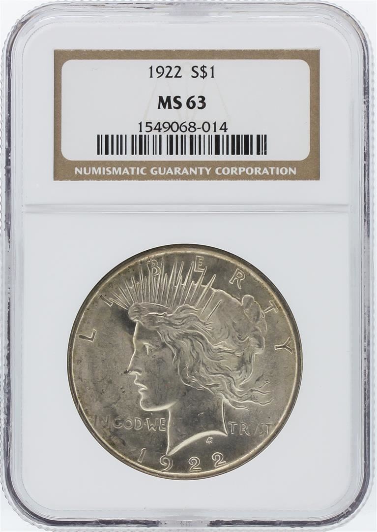 One 1922 NGC MS63 Peace Silver Dollar. NGC Certified.