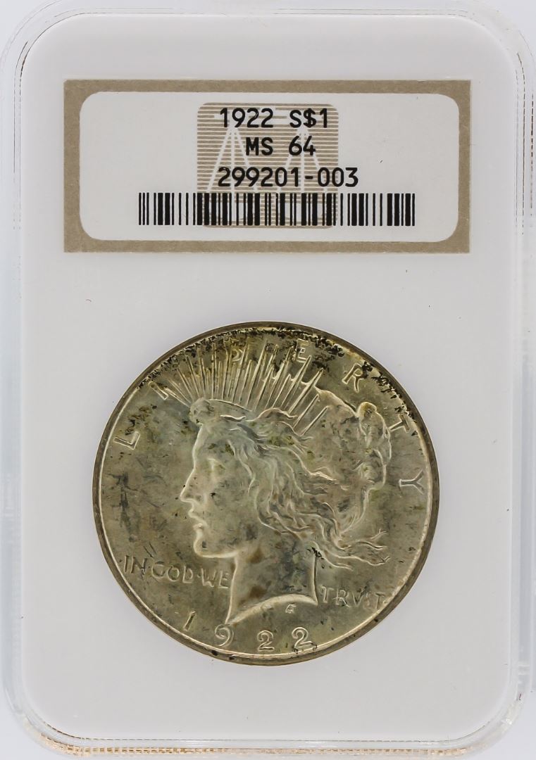 One 1922 NGC MS64 Peace Silver Dollar. NGC Certified.