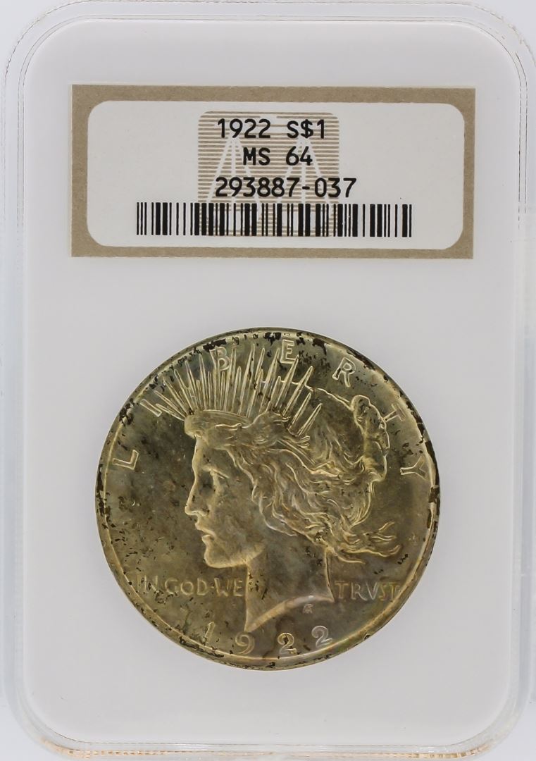 One 1922 NGC MS64 Peace Silver Dollar. NGC Certified.