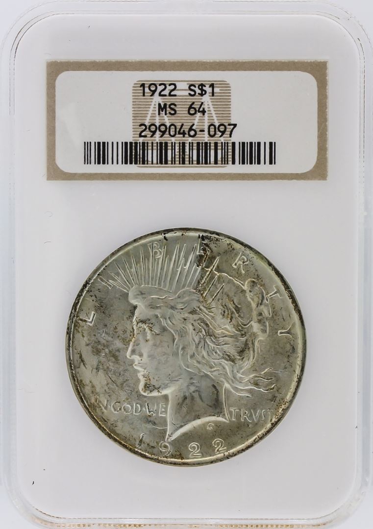 One 1922 NGC MS64 Peace Silver Dollar. NGC Certified.