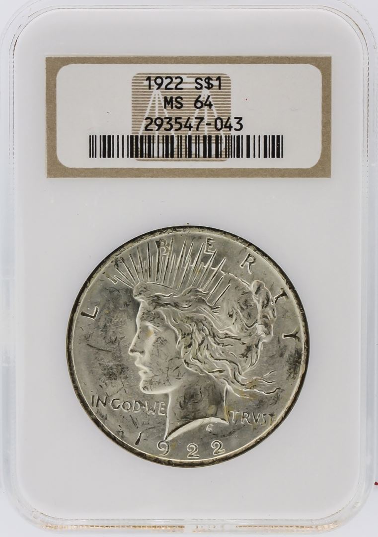 One 1922 NGC MS64 Peace Silver Dollar. NGC Certified.