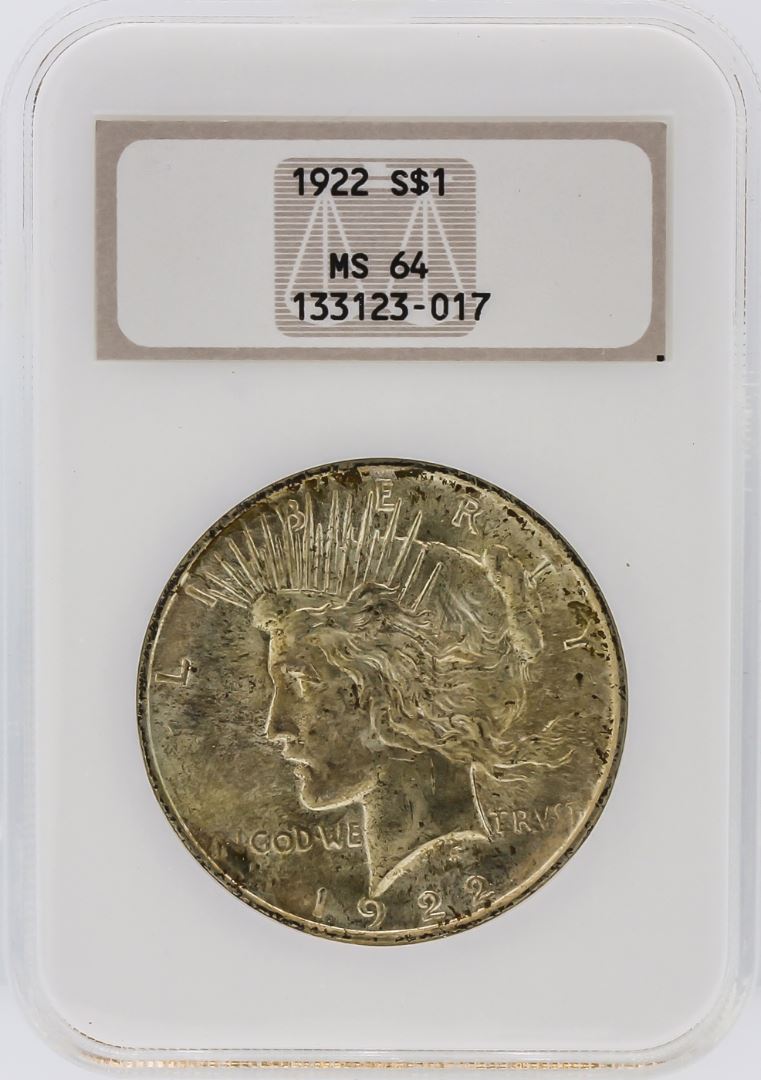 One 1922 NGC MS64 Peace Silver Dollar. NGC Certified.