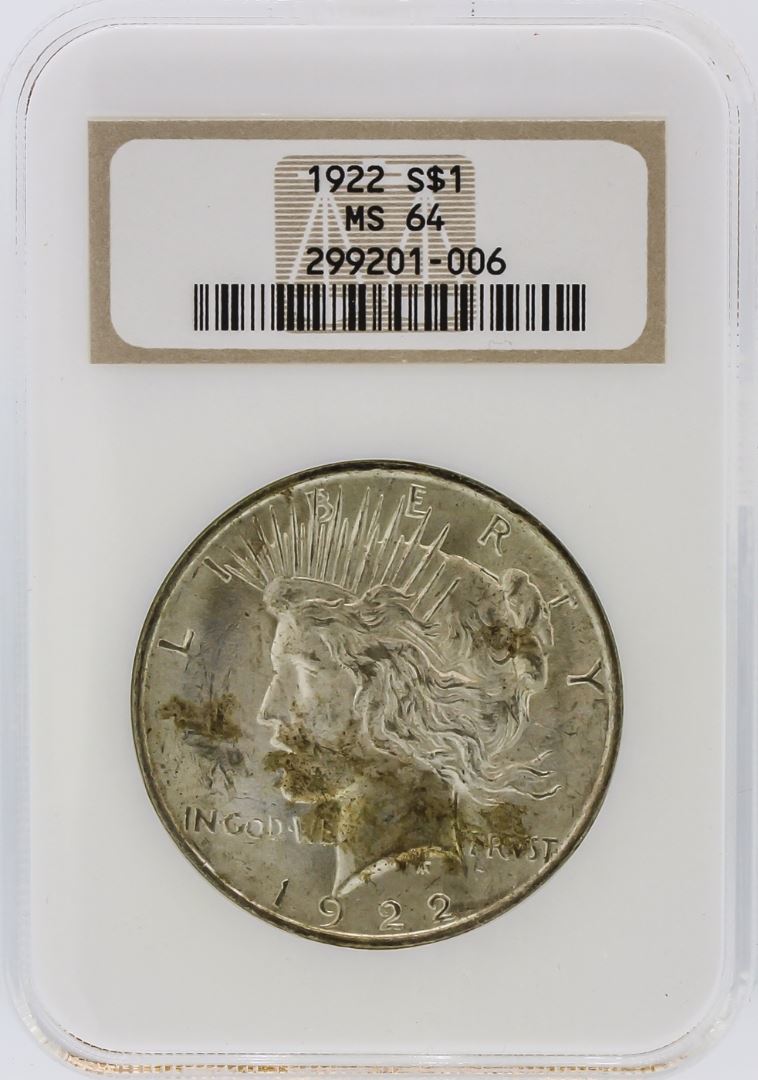 One 1922 NGC MS64 Peace Silver Dollar. NGC Certified.
