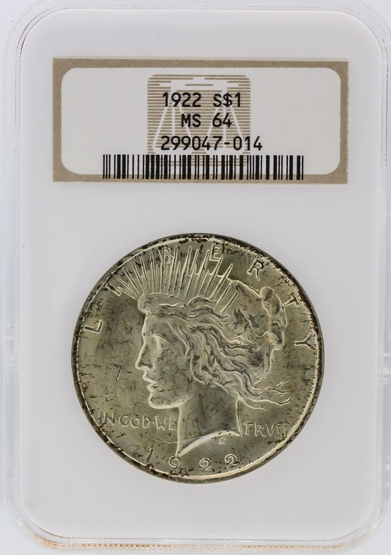 One 1922 NGC MS64 Peace Silver Dollar. NGC Certified.