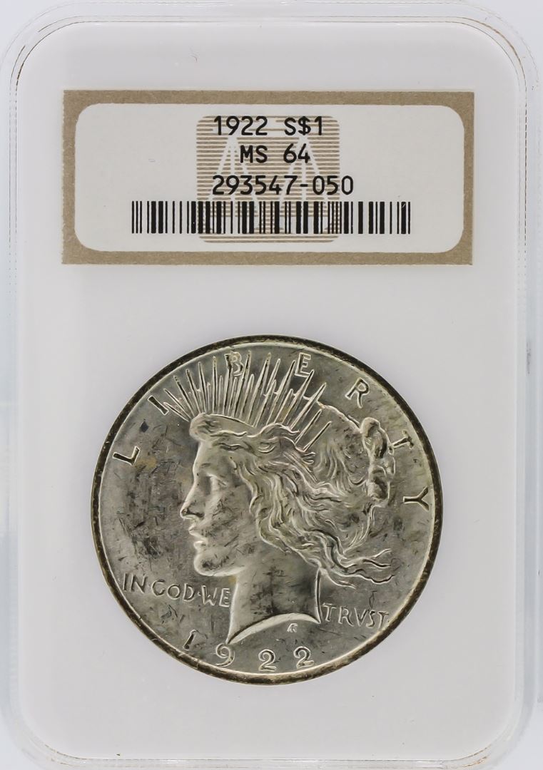 One 1922 NGC MS64 Peace Silver Dollar. NGC Certified.