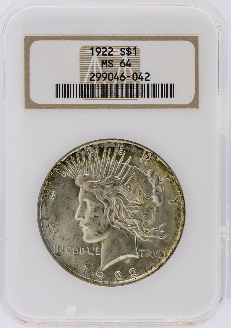 One 1922 NGC MS64 Peace Silver Dollar. NGC Certified.