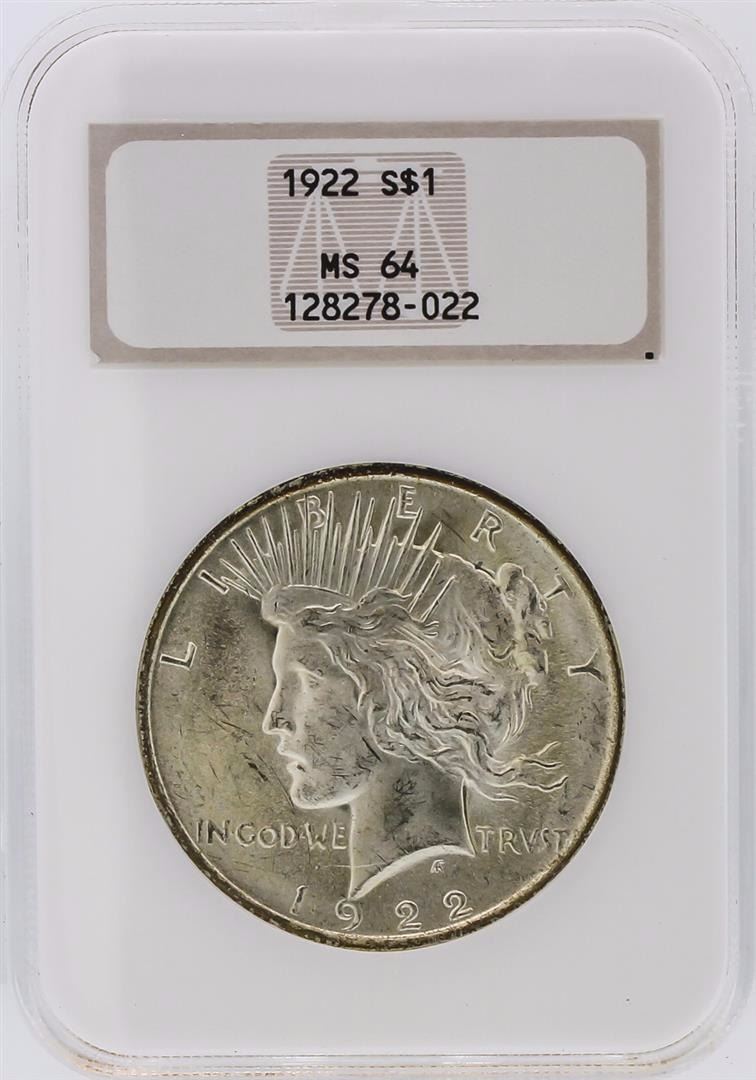 One 1922 NGC MS64 Peace Silver Dollar. NGC Certified.