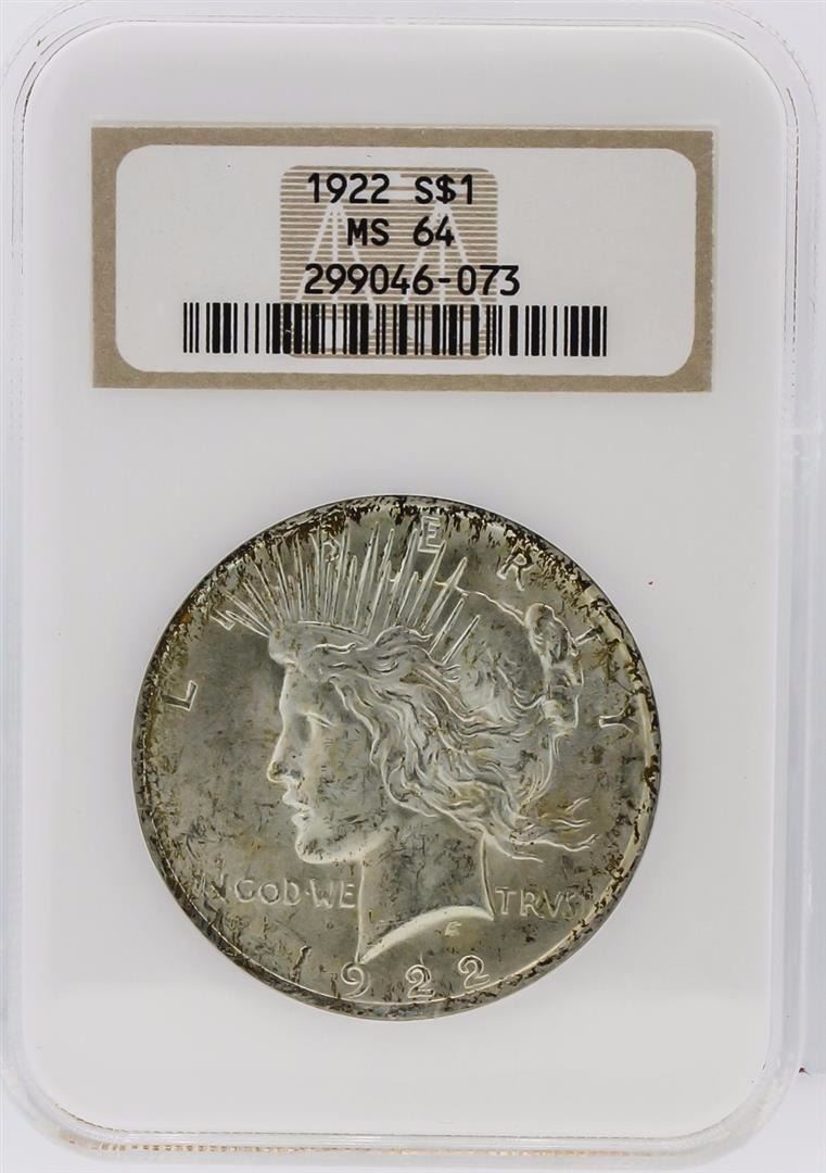 One 1922 NGC MS64 Peace Silver Dollar. NGC Certified.
