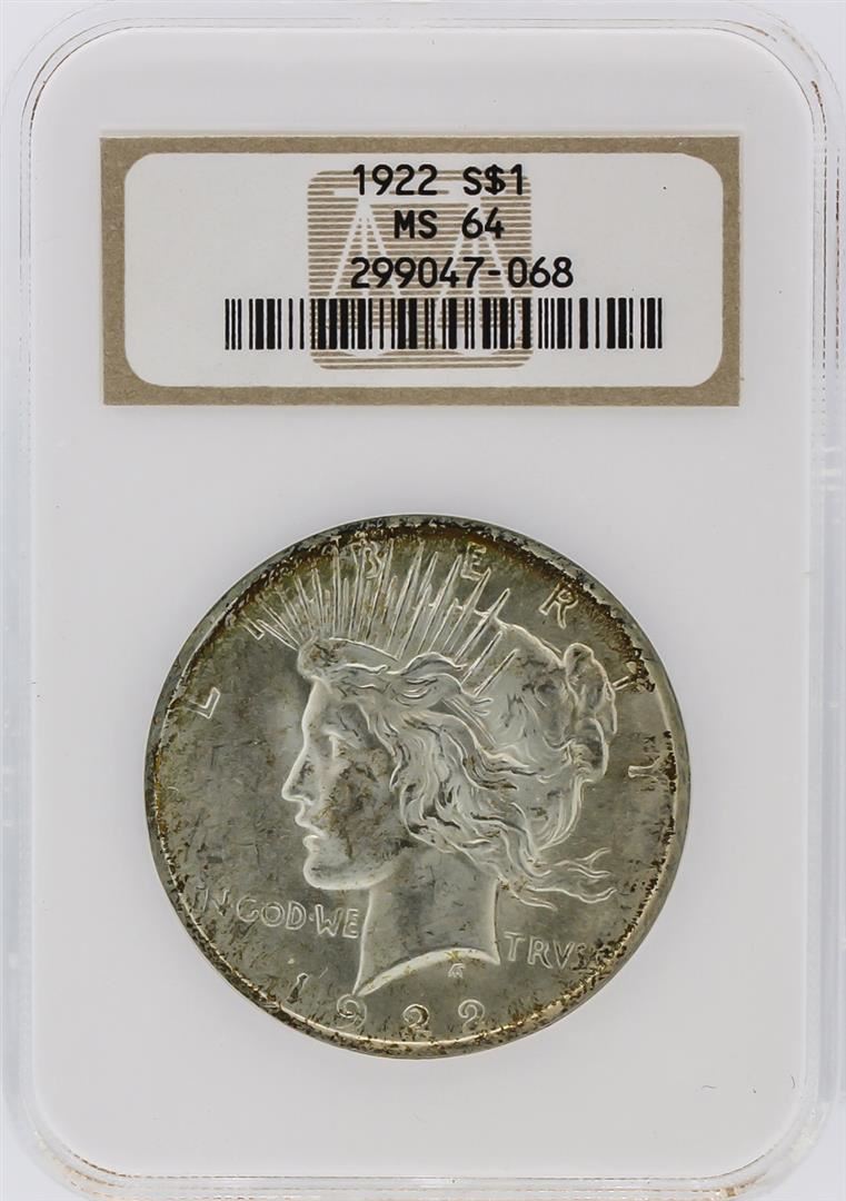 One 1922 NGC MS64 Peace Silver Dollar. NGC Certified.
