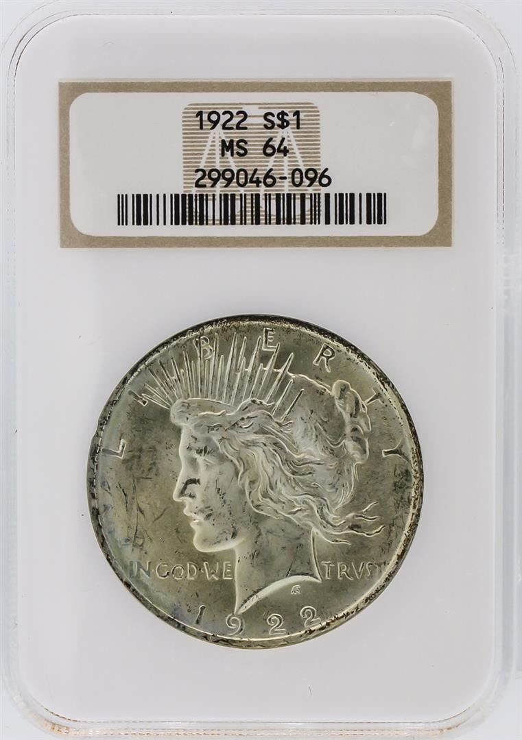 One 1922 NGC MS64 Peace Silver Dollar. NGC Certified.
