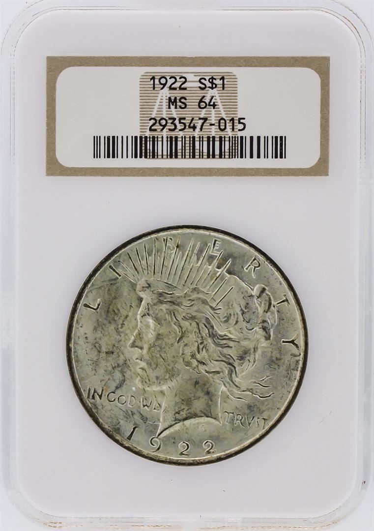 One 1922 NGC MS64 Peace Silver Dollar. NGC Certified.