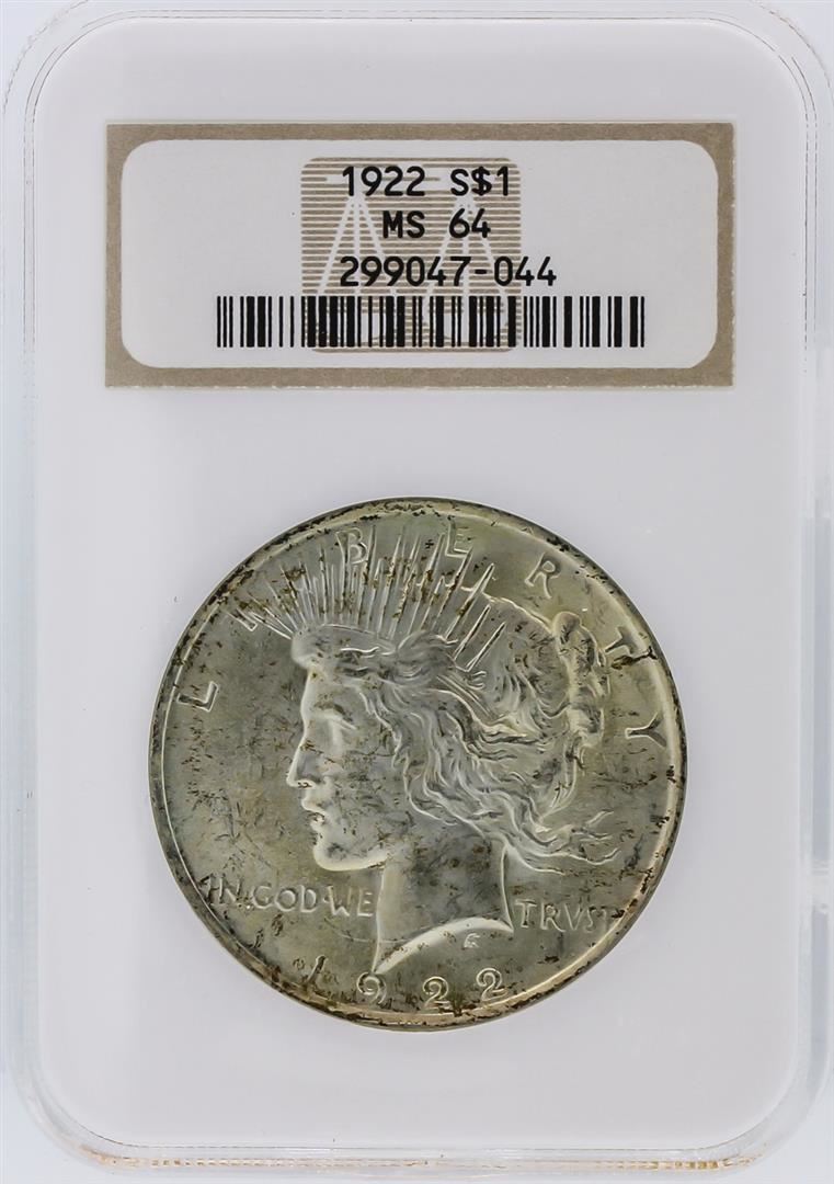 One 1922 NGC MS64 Peace Silver Dollar. NGC Certified.