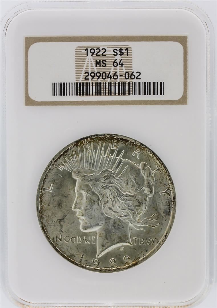 One 1922 NGC MS64 Peace Silver Dollar. NGC Certified.