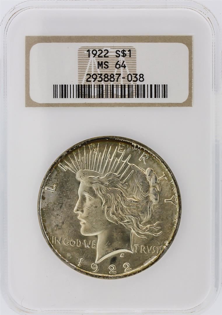 One 1922 NGC MS64 Peace Silver Dollar. NGC Certified.