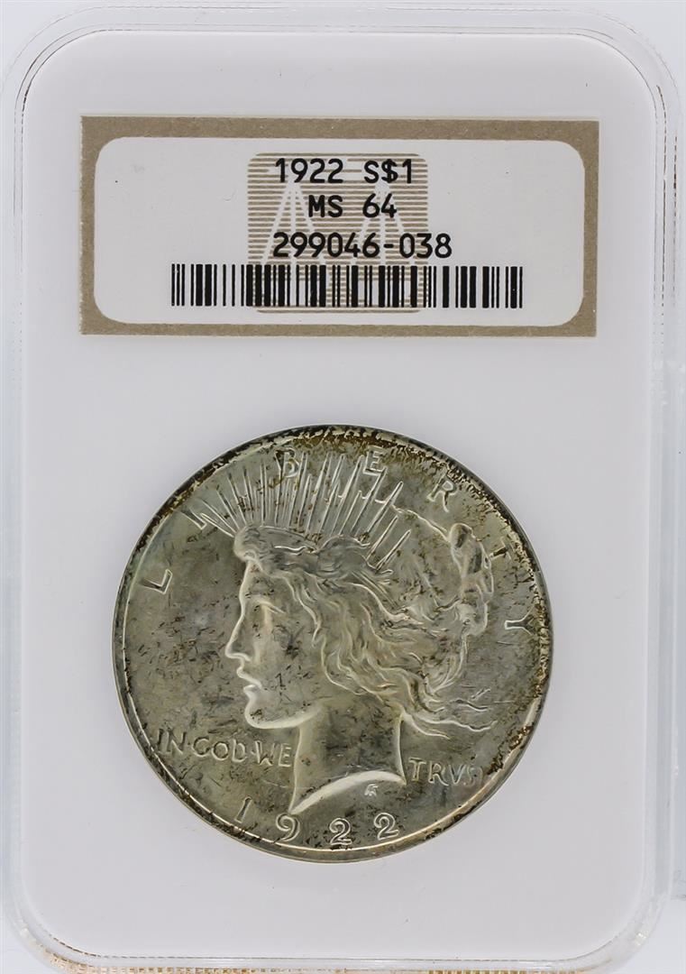 One 1922 NGC MS64 Peace Silver Dollar. NGC Certified.