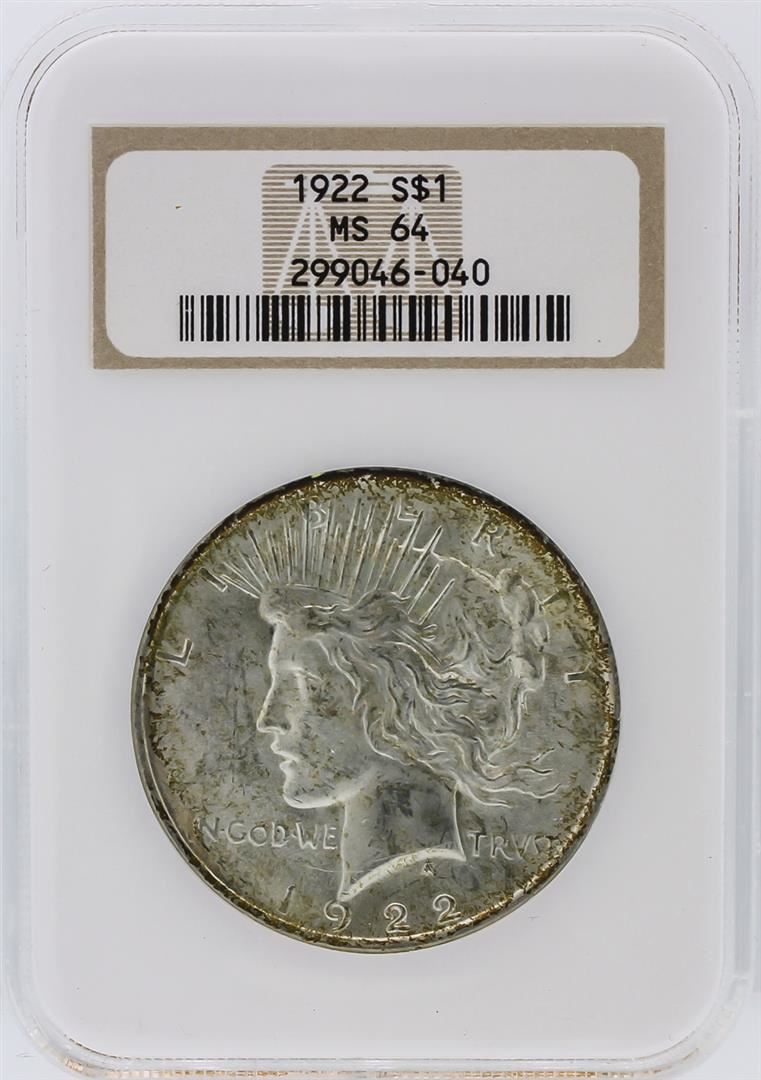 One 1922 NGC MS64 Peace Silver Dollar. NGC Certified.