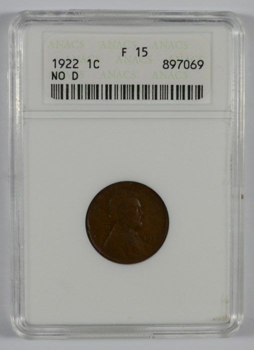 1922 NO D LINCOLN CENT, ANACS F/VF-15 VERY NICE!!~