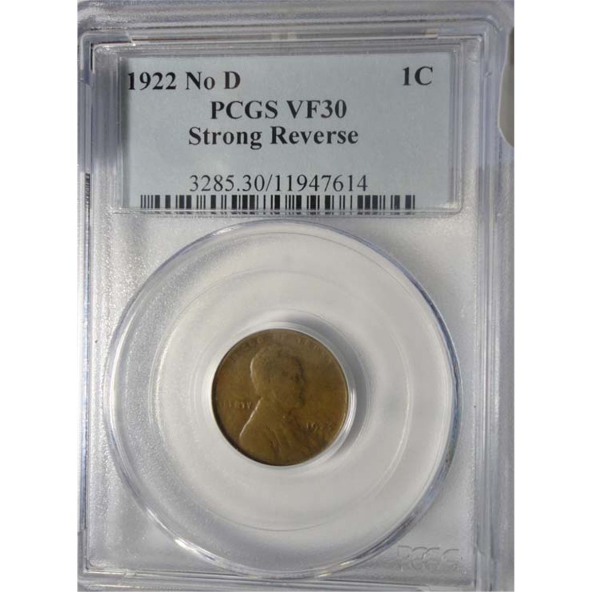 1922 NO D LINCOLN CENT PCGS VF-30 STRONG REVERSE