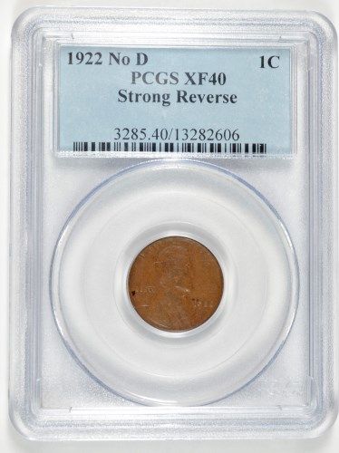 1922 "NO D" LINCOLN CENT, TYPE 2 REVERSE, PCGS XF-40 PERFECT!