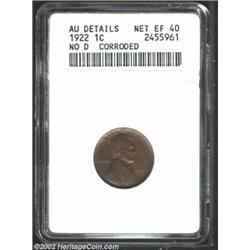 1922 No D 1C Strong Reverse, AU Details, Environmental Damage NCS. FS-13.2. When we think of corrosion on a copper coin we are accustomed to corroded Colonials where the coin looks like the lunar surface under magnification. The reverse of this coin shows microscopic granularity, and there are several darker spots of carbon scattered on each side and some pinscratching in the left obverse field, but all in all this coin presents quite well. Tiny bits of luster still remain and the color overall is a warm reddish-brown.From the Robert Tarr, Sr. Collection. Important notice: We expect to be auctioning lots at the rate of 200-250 per hour. Sometimes eBay Premier live bid software cannot keep up with that pace, so we strongly recommend that you place a realistic proxy bid now as insurance to avoid disappointment. Also please note that all Heritage/CAA lots purchased through eBay Premier carry a 20% Buyer's Premium. Please make sure you read the Terms and Conditions.
