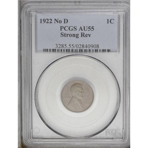 <B>1922 No D<1C> Strong Reverse AU55 PCGS.</B></I> A chocolate-brown cent that has a smooth, glossy appearance. The reverse is sharp, as is the date, while IN GOD WE TRUST shows weakness diagnostic for the variety. A couple of small digs are seen on the reverse, but these hardly detract. A key date to this extremely popular 20th century series.