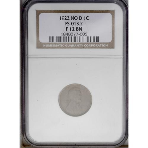 1922 No D 1C Strong Reverse Fine 12 NGC. FS-013.2. 1922 No D[1C] Strong Reverse Fine 12 NGC.