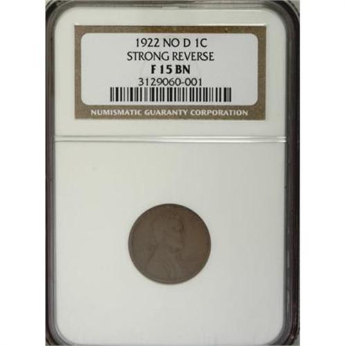 <B>1922 No D 1C Strong Reverse Fine 15 NGC.</B></I> FS-401, formerly FS-013.2. Die Pair 2. A collector-grade tan-brown example of this key Guide Book variety. Problem-free aside from minor granularity near the reverse rim at 5 o'clock.<BR><BR><B>Coin Engraver:</B> Victor D. Brenner<BR><BR><b>Shipping:</b> Coins & Currency (<a target="_blank" href="http://www.heritageauctions.com/common/shipping.php">view shipping information</a>)
