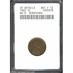 1922 No D 1C Strong Reverse--Scratched--ANACS. VF Details, Net Fine 12. A few short scratches are clustered n the right obverse field, a relatively minor distraction on this popular variety. Important notice: We expect to be auctioning lots at the rate of 200-250 per hour. Sometimes eBay Premier live bid software cannot keep up with that pace, so we strongly recommend that you place a realistic proxy bid now as insurance to avoid disappointment. Also please note that all Heritage/CAA lots purchased through eBay Premier carry a 20% Buyer's Premium. Please make sure you read the Terms and Conditions.