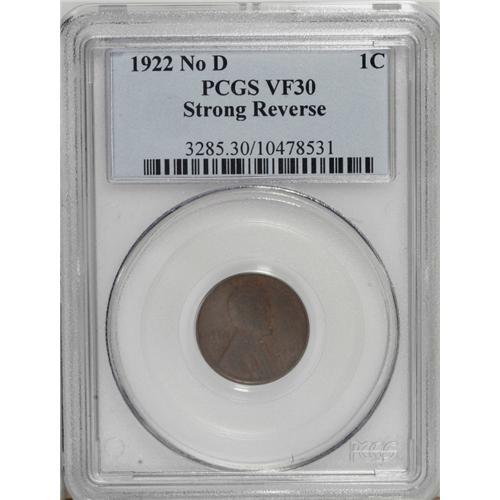 1922 No D 1C Strong Reverse VF30 PCGS. FS-013.2. Die P