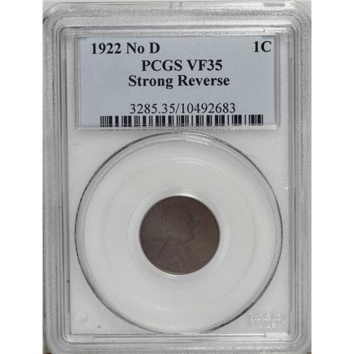 1922 No D 1C Strong Reverse VF35 PCGS. FS-013.2. Die P