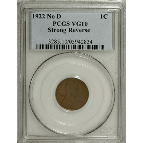 <B>1922 No D 1C Strong Reverse VG10 PCGS.</B></I> FS-013.2. Die Pair 2. An olive-brown example that can be identified by a dull thin mark in the field near the chin. A collectible representative of this key <I>Guide Book</B></I> variety.<BR><BR><b>Shipping:</b> Coins & Currency (<a target="_blank" href="http://www.heritageauctions.com/common/shipping.php">view shipping information</a>)