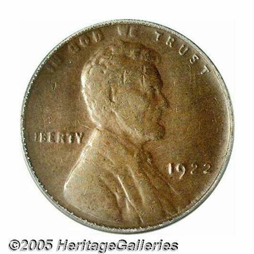 <B>1922 No D<1C> Strong Reverse XF45 PCGS.</B></I> The obverse is unusually well defined on this coin, giving a clear view of the empty area in which the mintmark should have appeared. The coin has good copper color, with a couple of mentionable contact marks on Lincoln's head. Still, a smooth, glossy example worthy of a high grade collection.