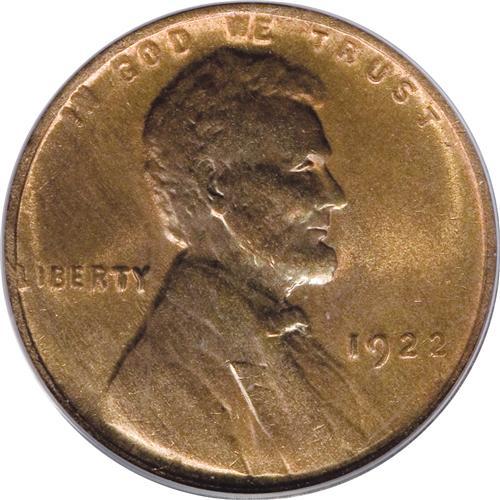 <B>1922 No D 1C Weak Reverse MS64 Red and Brown PCGS.</B></I> Housed in an older green-label holder, this example of the Weak Reverse variety is a remarkable piece with considerable orange mint luster on each side, blended with light brown and iridescent toning that is somewhat mottled on the reverse. PCGS currently recognizes 1922 Plain cents with either a Strong Reverse or a Weak Reverse, as well as examples of the 1922-D cent with either a strong mintmark or a weak mintmark. Regardless of variety, the 1922 Plain cents seldom come any finer than this example. The current PCGS population report (4/07) shows four MS64RB examples of the Strong Reverse, two MS65RB examples, and one MS64RD piece, as well as three MS64RD examples of the Weak Reverse variety. Population: 9 in 64, 0 finer (3/07).<BR><BR><b>Shipping:</b> Coins & Currency (<a target="_blank" href="http://www.heritageauctions.com/common/shipping.php">view shipping information</a>)