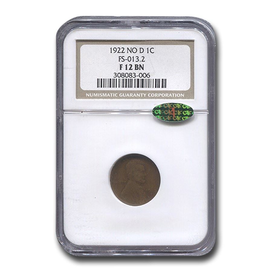 1922-No D Lincoln Cent Fine-12 NGC CAC (Brown, FS-103.2)
