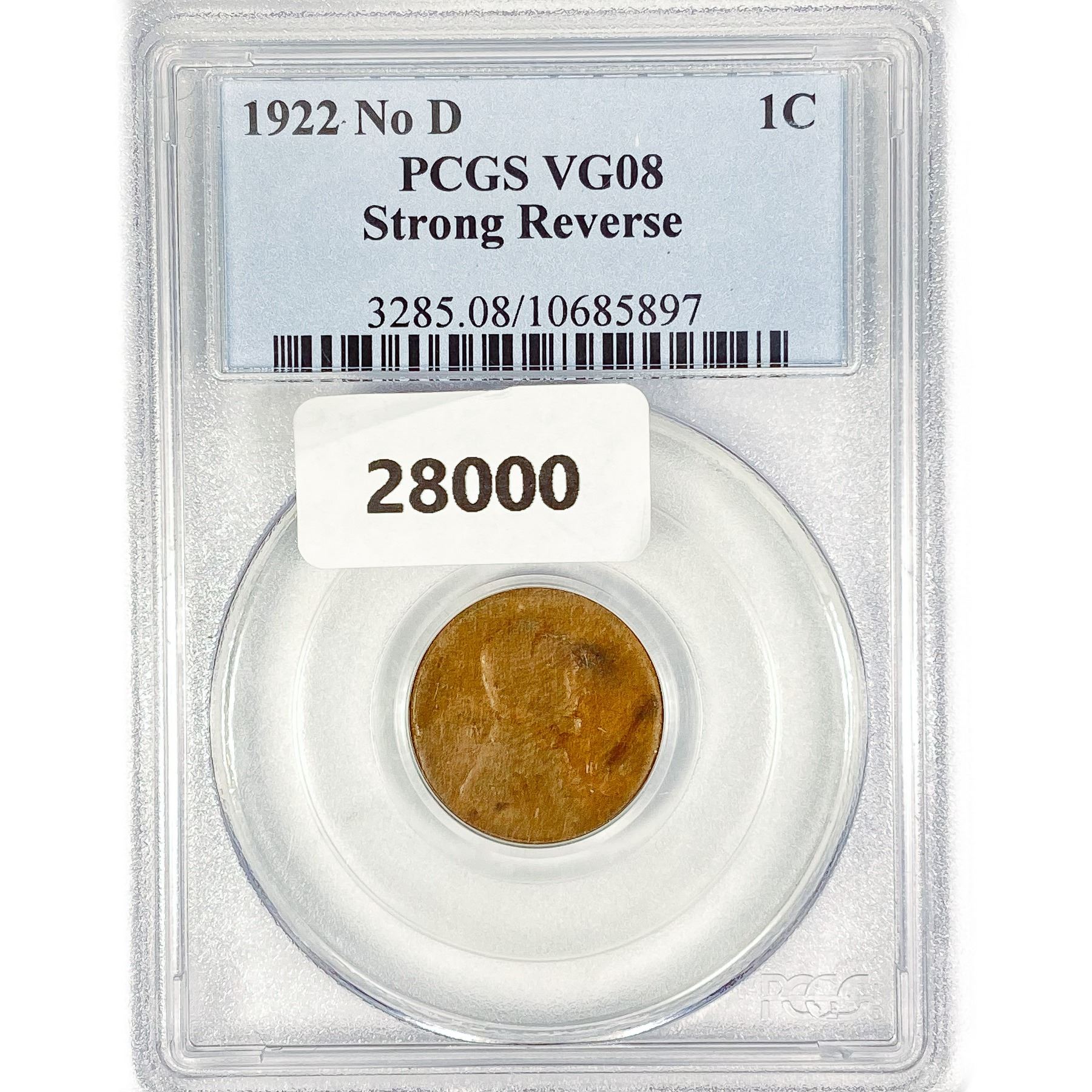1922 No D Wheat Cent PCGS VG08 Strong Reverse