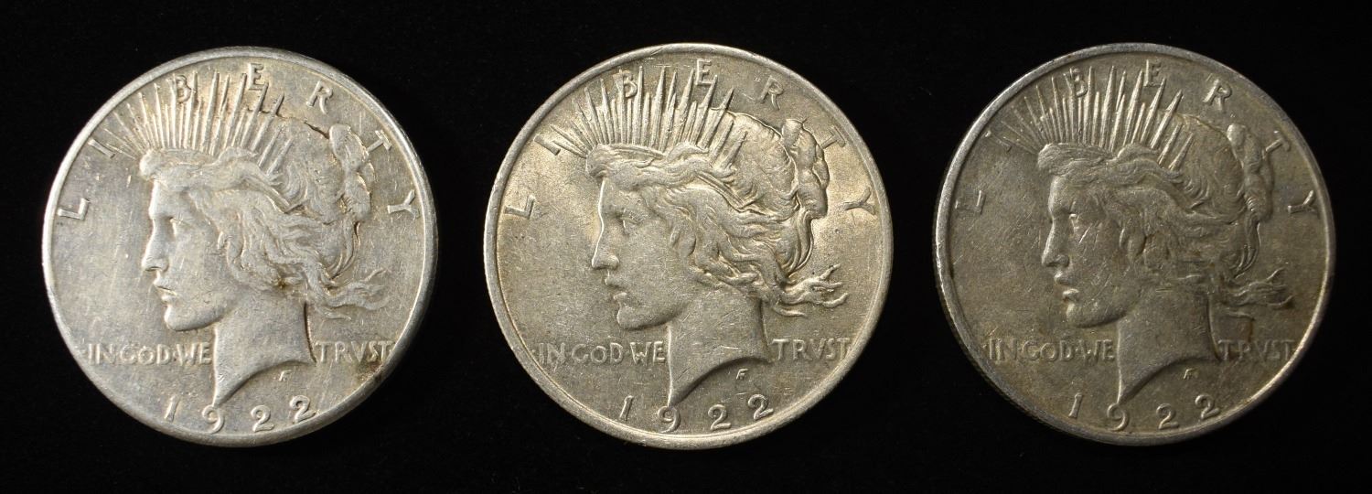 1922 P,D,S PEACE DOLLARS