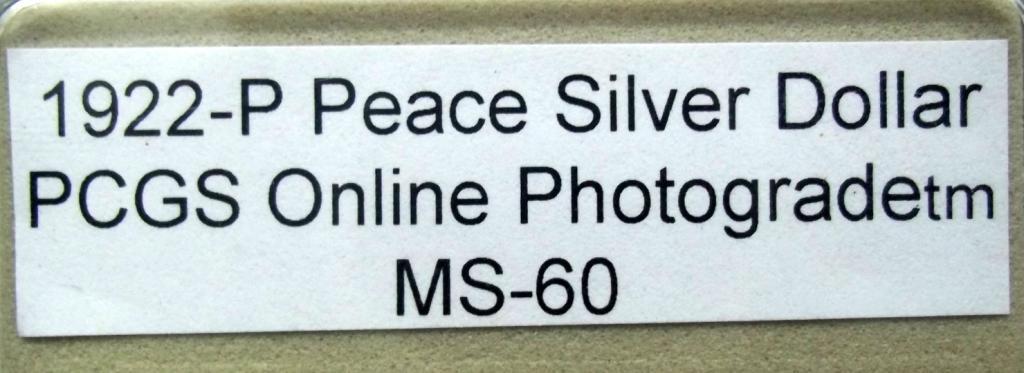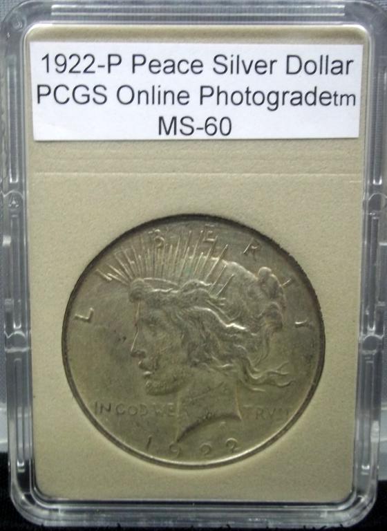 This gorgeous Peace Dollar has a PCGS Online Photograde MS-60. Control #F035303