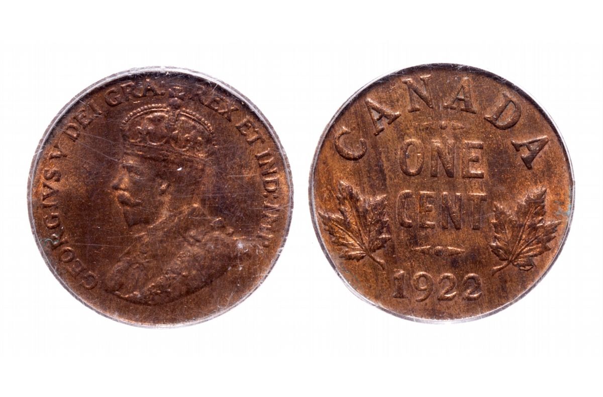 1922. PCGS graded Mint State-64. Red-Brown. 30% original red luster remaining.