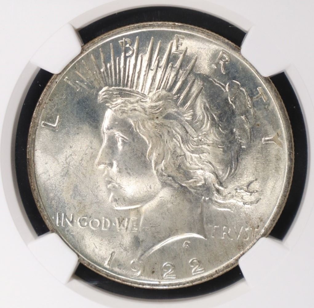 Grading: Every person has their own opinion. It is the responsibility of the buyer to examine and grade to their own satisfaction before they bid. ABSOLUTELY NO COIN RETURNS ON THE BASIS OF GRADE. Buyers shall rely entirely on their own inspection and information. Our estimates are values taken from the latest "Coin World" trends based on t he grade listed of a coin. This value/estimate is not an inducement to bid this amount. Bid the amount you wish. If you have questions or concerns about any coin, call us before you bid.