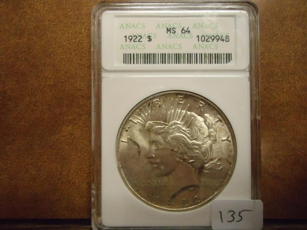 1922 PEACE SILVER DOLLAR ANACS MS64