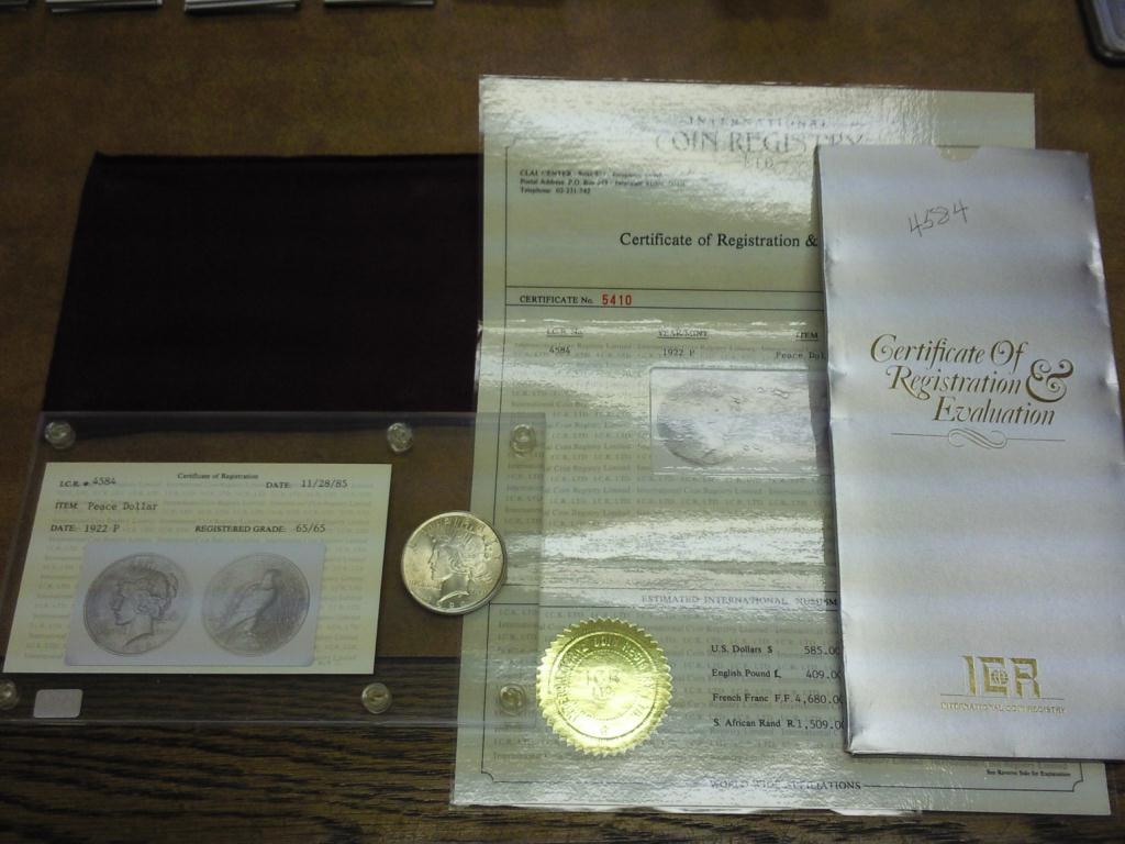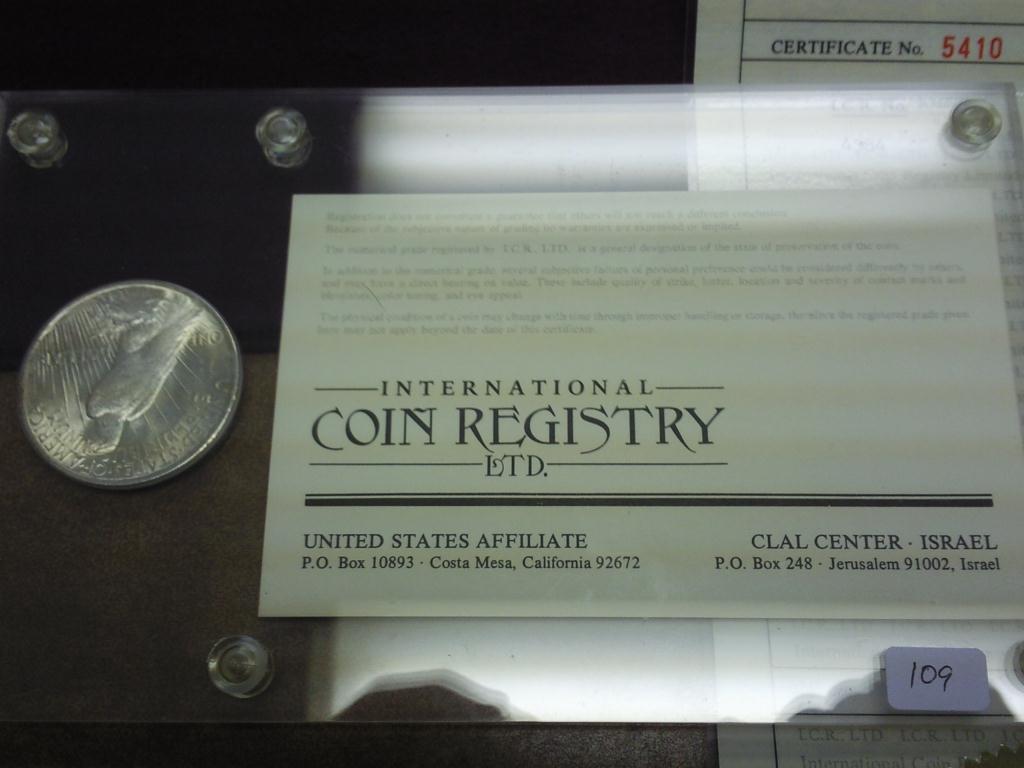 OLD THIRD PARTY GRADING SLAB, INCLUDES CERTIFICATE OF AUTHENTICITY AND BAG