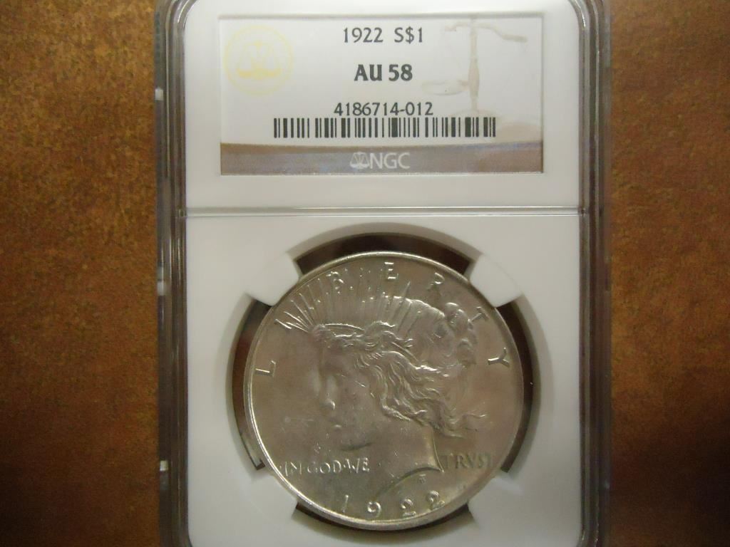1922 PEACE SILVER DOLLAR NGC AU58