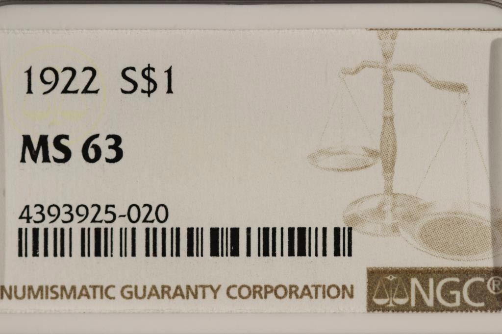 1922 PEACE SILVER DOLLAR NGC MS63